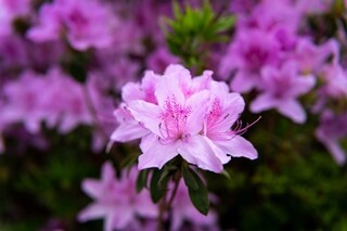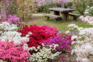 公園や街路などでよく見かけるヒラドツツジという品種をはじめ、野生のキシツツジ、100日間花が咲き続ける品種や、江戸時代から既に育てられていた品種、八重咲きの品種など、少し珍しい品種も見ることができます。これらのツツジの花は、生物資源科学部 農林生産学科の小林 伸雄 教授が管理・研究を行っています。様々な品種があり、それぞれが鮮やかな赤や薄いピンク、白など、色とりどりの花を咲かせています。