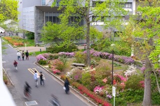 学生支援センターの入口横では、尾原ダム(島根県雲南市)の建設にともなって斐伊川上流部から避難させ移植したツツジの一部も見ることができます。
