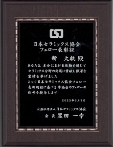 総合理工学部物質化学科の新大軌准教授が、日本セラミックス協会から 「フェロー」を授与されました。フェロー表彰は、セラミックス分野の発展に貢献し、顕著な業績を挙げたセラミックス協会個人会員を称え、日本セラミックス協会フェロー(英語名称:CerSJ Fellow)の称号を授与することで、協会を代表するに相応しい会員としての活動の継続を期待すると共に、セラミックス分野の更なる発展を図ることを目的としています。