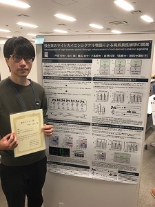 門田さんは,接ぎ木技術を使って,植物ホルモンの一種であるサイトカイニンの量を巧みに操作することにより,植物の成長を飛躍的に高めることに成功しました。「優秀ポスター賞」は本研究会で発表されたポスター発表の中から,特に優れたものに贈呈される賞です。