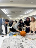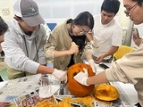 外国語教育センターでは,毎年学生たちがハロウィンで飾るため,カボチャでランタン作りをしています。今年は,日本人学生に中国,韓国,ポーランド,インドからの留学生も参加し,18名で3個の大きなカボチャを3グループで作成し,どれもオリジナリティ溢れるランタンが出来あがりました。