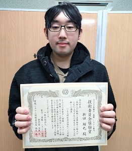 自然科学研究科理工学専攻知能情報デザイン学コースの新田翔也さんが、電気学会2023年電子・情報・システム部門技術委員会奨励賞を受賞しました。