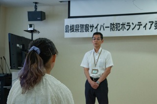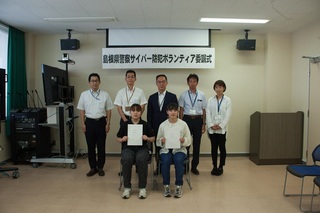 島根県警察サイバー防犯ボランティアとは,インターネット上の違法・有害情報を発見・通報するサイバーパトロールを行ったり,サイバー犯罪撲滅のための広報活動への参加等を行うもので,今年度は島根大学から4名の学生が委嘱を受けました。