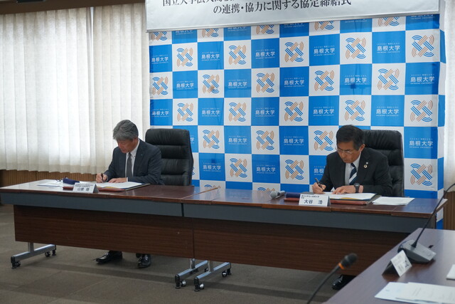 また、島根大学の大谷学長は、「地域に根ざした情報発信の質を高め、本学の技術や知見を地域の皆様へ広く還元するとともに、学生や若年層の山陰地方での就職率や定着率の向上に貢献できるよう、連携して取り組んでいきたい」と述べ、今後の協力に対する期待を示しました。