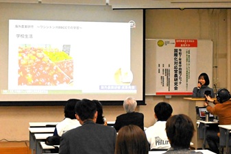 研究会には、大学生、院生、外国人留学生、高校生、教員、渡航農業研修生OB、ASEAN農業研修生など、あわせて約45名の参加者があり、農業における海外留学経験の重要性やメリット、地域の農業に求められている人材、国際化する農業や畜産業の事業展開など、研究会でのマイクリレートークとその後大学食堂ニコラで催した交流会の場において、活発な意見交換や情報交換が繰り広げられました。