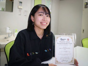 2025年11月23日および24日に開催された2025年日本化学会中国四国支部大会香川大会において、自然科学研究科環境システム科学専攻物質化学コースの石毛丹子さん(博士前期課程2年生)が口頭発表を行い、「学生優秀発表表彰(Chemistry Letters Young Researcher Award)」を受賞しました(指導教員:飯田拡基教授)。石毛さんらは、リボフラビン (ビタミンB2)誘導体を用いる光応答性超分子ゲルの開発を行っています。上記の学会では、形成した超分子ゲルに光や熱の刺激を与えることで、精密に構築されたキラルな高次構造を可逆的に制御できることを報告しました。