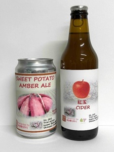 今回、新たなコラボ企画として、多数のサクラ品種・系統を保存していることで全国的に知られている本学部本庄総合農場のオリジナルサクラ品種(本庄曙)から、新たにローカル酵母を見出しました。この“本庄曙桜酵母”の活用により、トライアル・バージョン第2号として、島根大学オリジナル有機質肥料「キャンパスト」を用いて栽培したサツマイモ(べにはるか)を副原料としたサツマイモビール(スイートポテト・アンバーエール)が石見麦酒により醸造されました。引き続き、トライアル・バージョン第3号として、本庄総合農場で栽培したリンゴ(紅玉)を用いたシードル**(紅玉シードル)を開発しました。