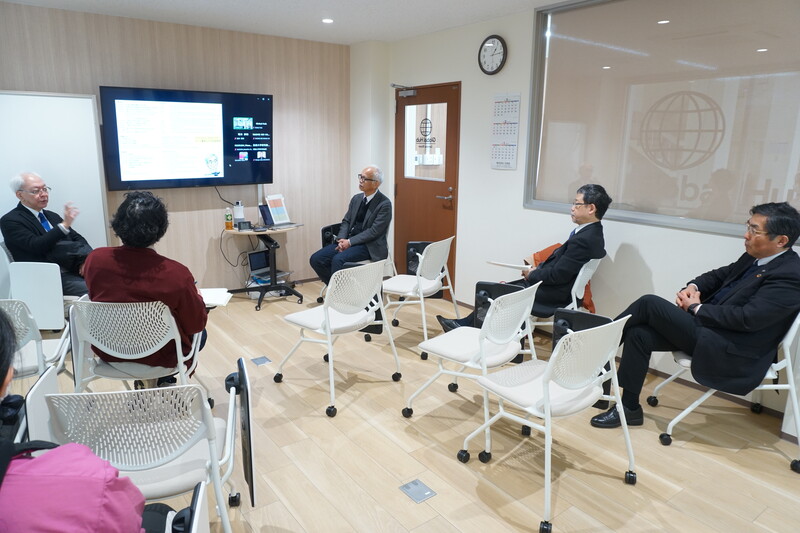交流会の冒頭では、S‑SPRING事業統括の齋藤文紀教授より、本プロジェクトの概要について説明がありました。