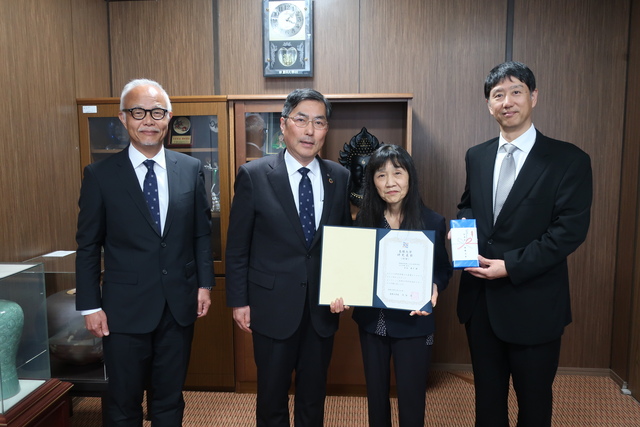 令和7年度の研究表彰は、功労に1名と1グループ、学術に3名、奨励に2名の受賞が決定しました。表彰式では、大谷学長が表彰状と記念品を授与し、これまでの卓越した研究実績に対する祝辞と共に、「今後も本学の柱として研究活動を牽引してほしい。」と受賞者の一層の活躍に向けて激励の言葉を贈りました。