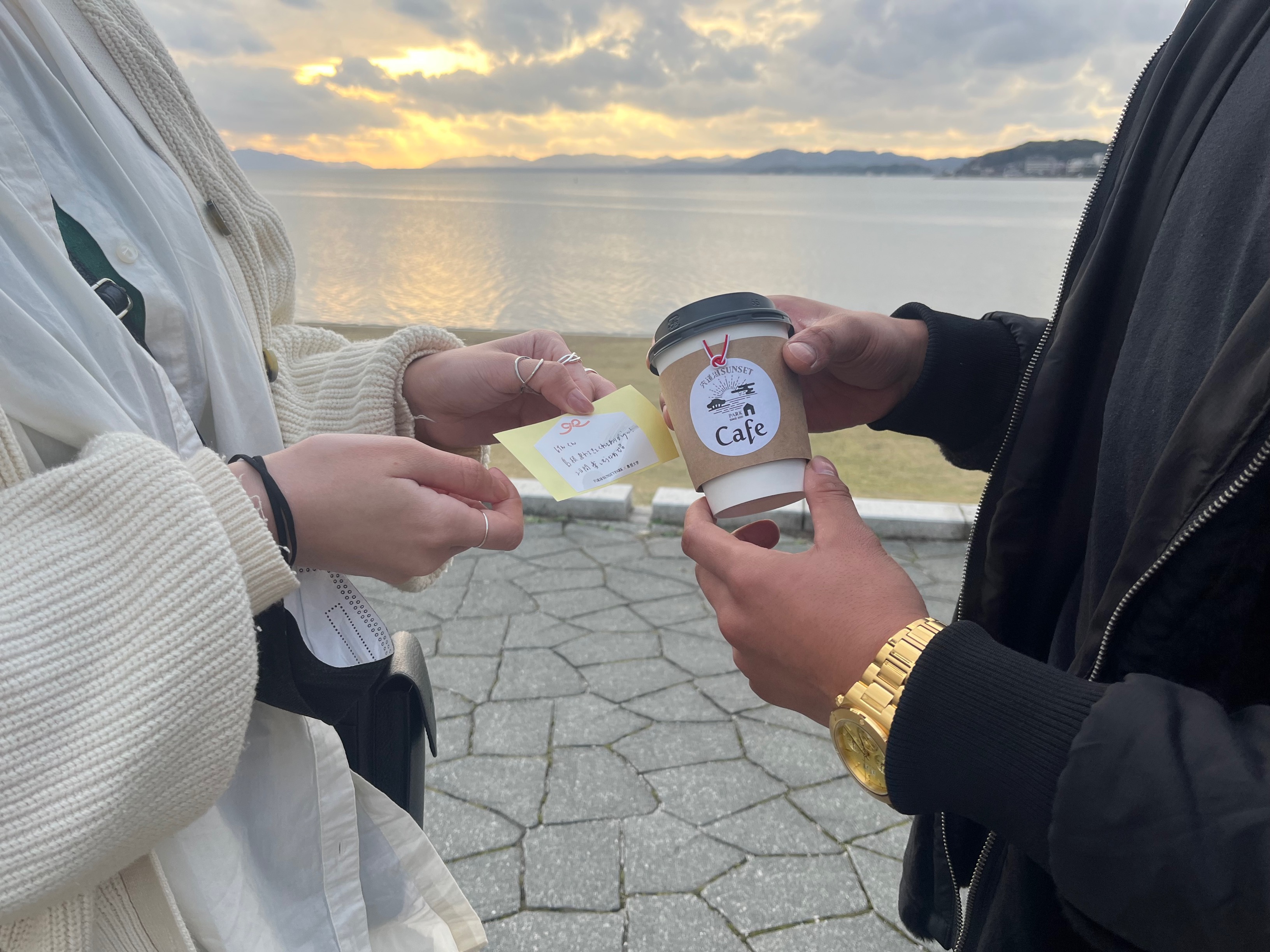 本企画は「伝える・つながるメッセージカップイベント」と題し、カフェのドリンクカップに貼ってメッセージが書き込めるオリジナルステッカーを、宍道湖 SUNSET PARK & Caféと共同作成しました。